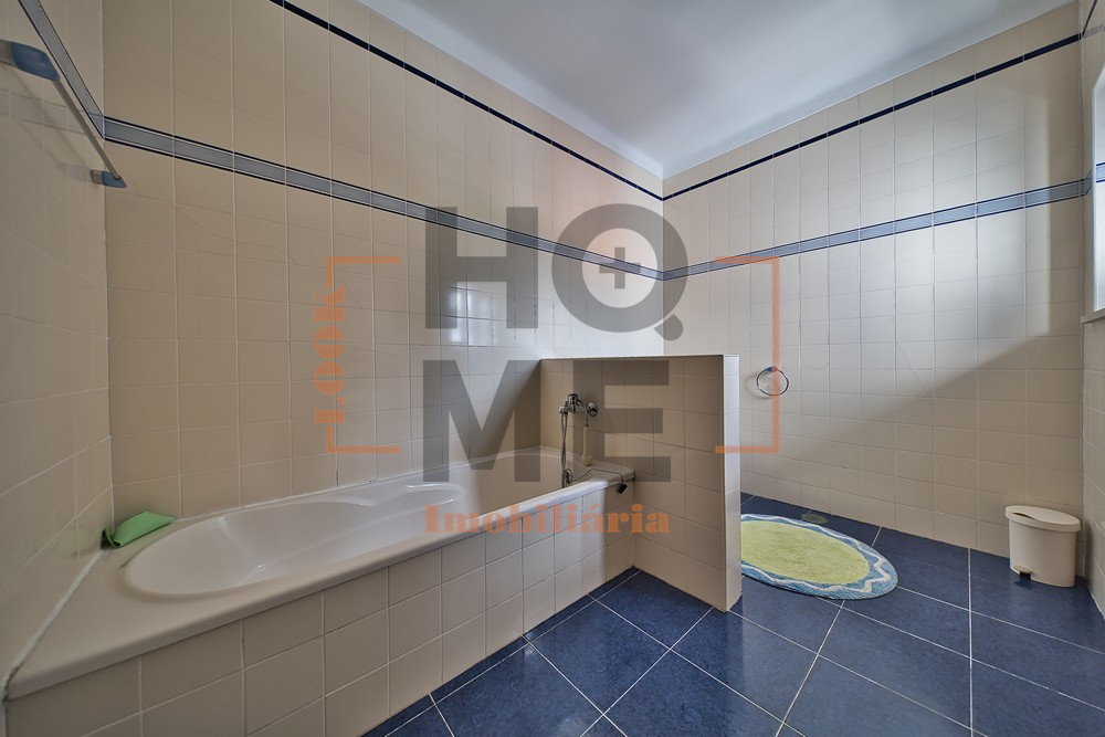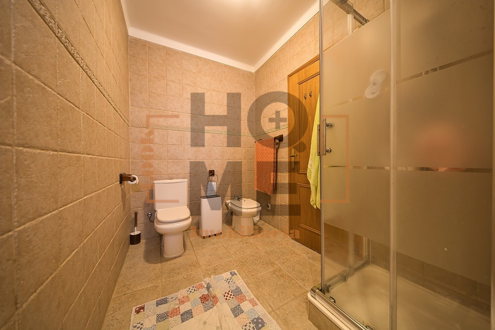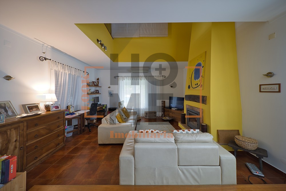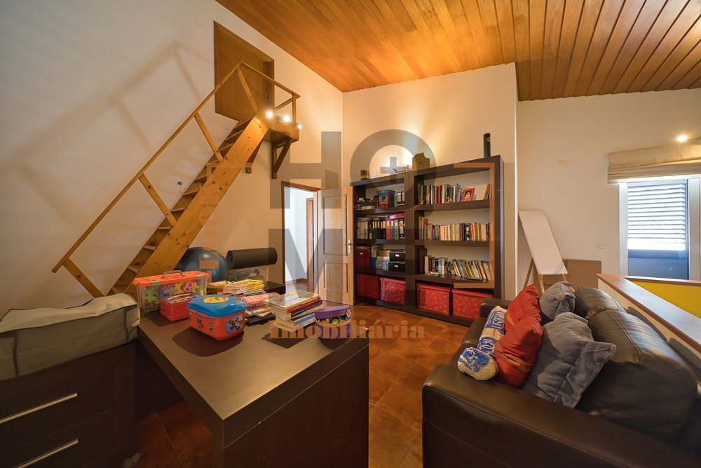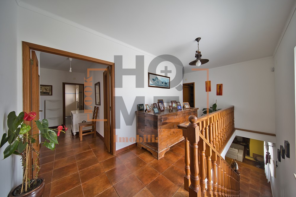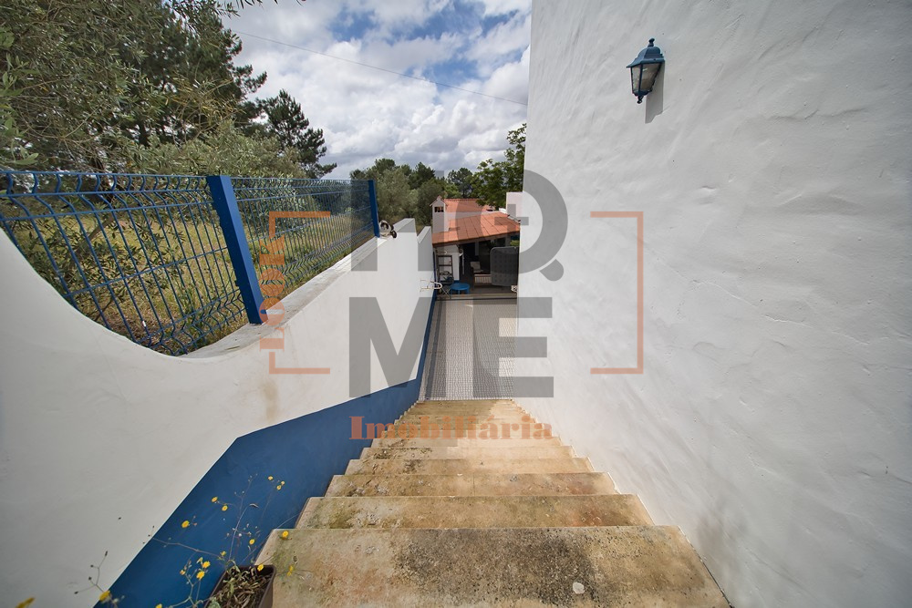 On the 1st floor we have a circulation hall, two bedrooms with AC and one of them with wardrobe, a bathroom with bathtub to support them; a suite with bath, a closet and access to a terrace of 22m2 where we can enjoy a fantastic view over the Ribatejana Lezíria. We also have a mezzanine office for the living room with access to the same terrace and a storage area.