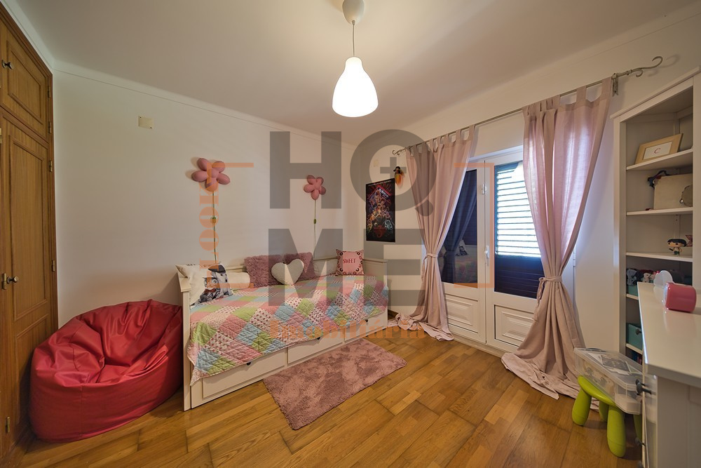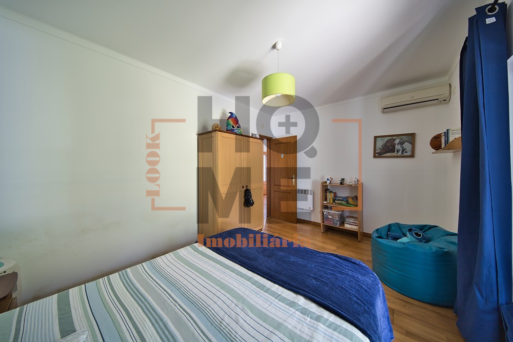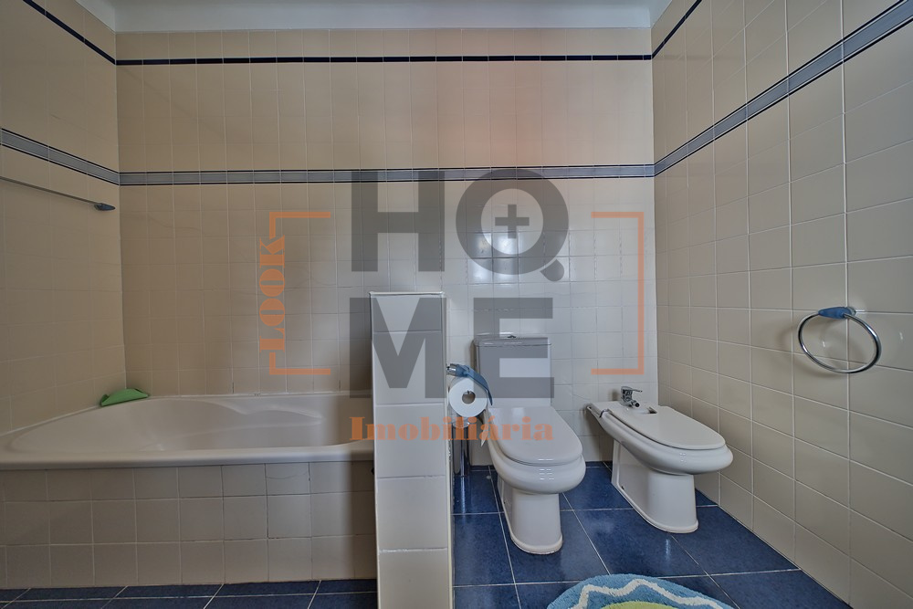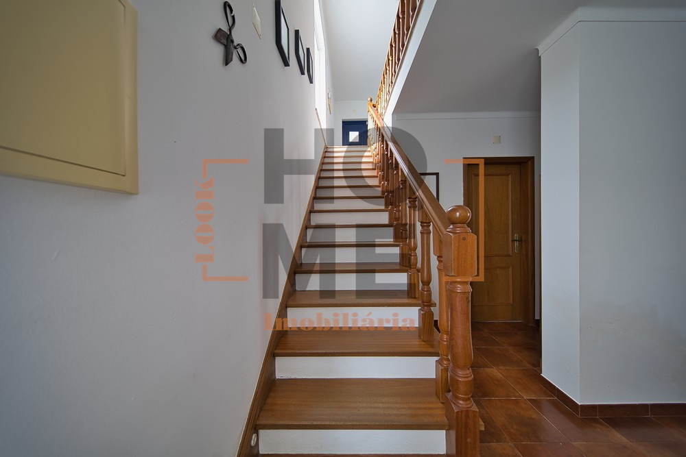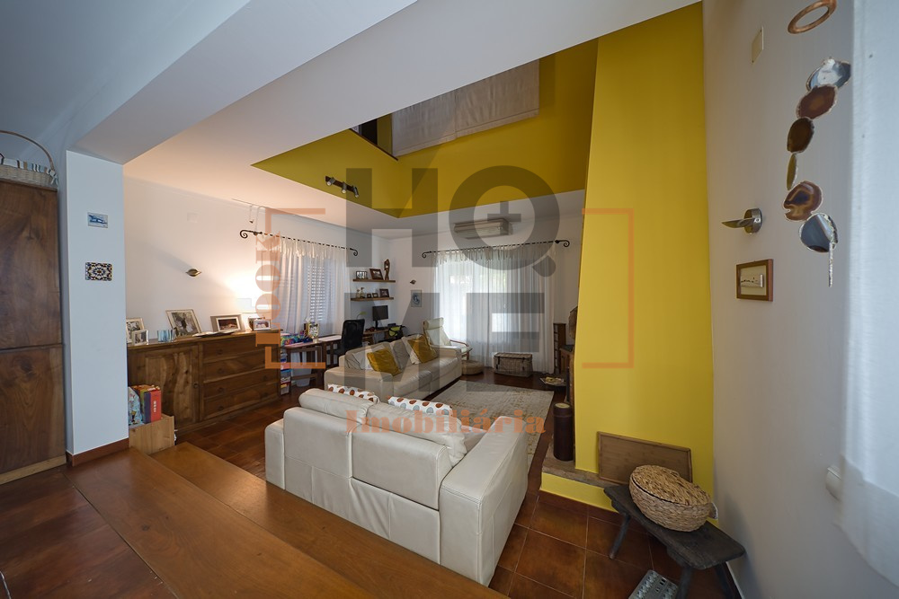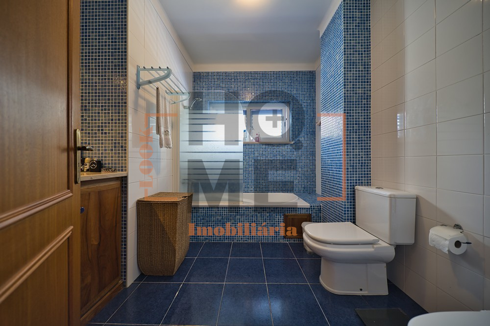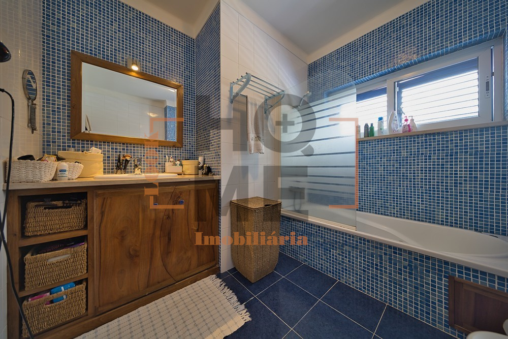 On the 1st floor we have a circulation hall, two bedrooms with AC and one of them with wardrobe, a bathroom with bathtub to support them; a suite with bath, a closet and access to a terrace of 22m2 where we can enjoy a fantastic view over the Ribatejana Lezíria. We also have a mezzanine office for the living room with access to the same terrace and a storage area.