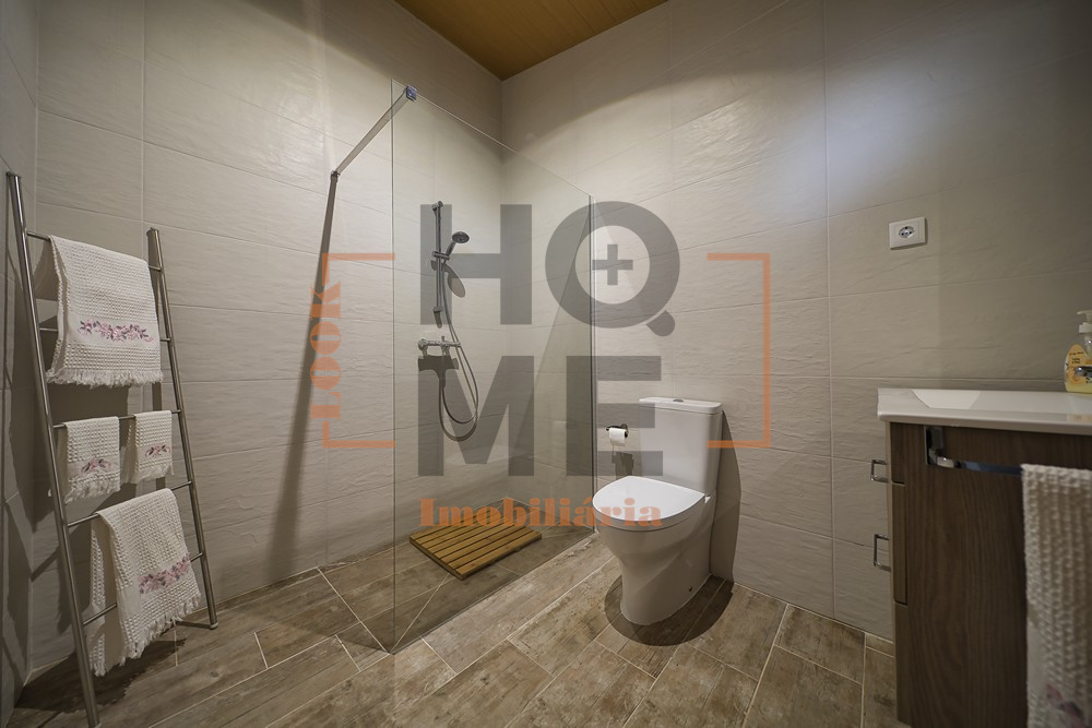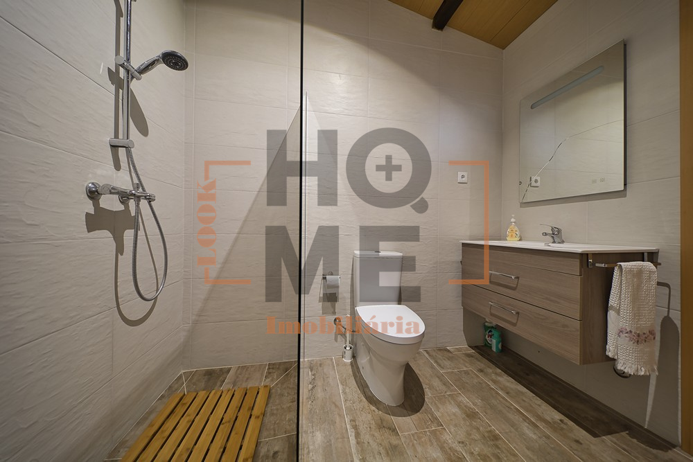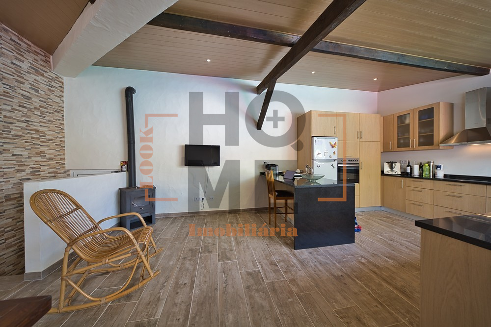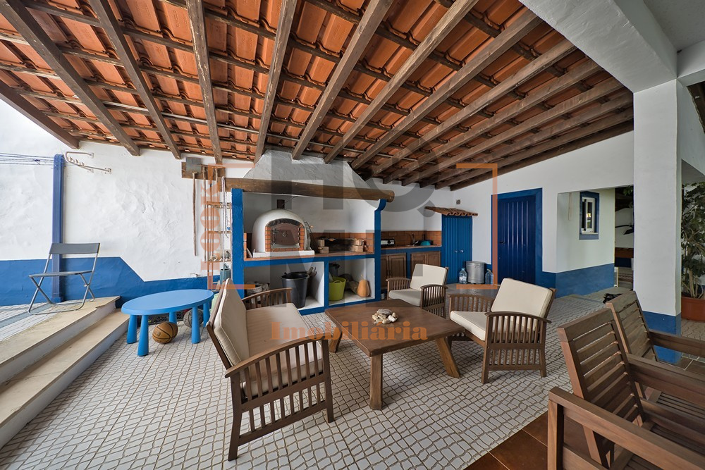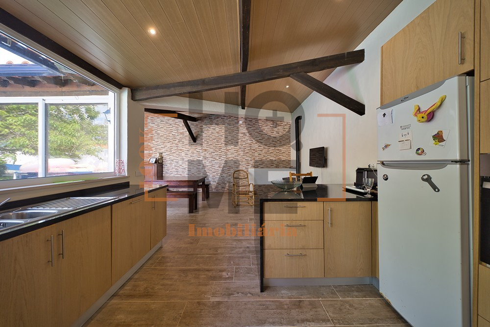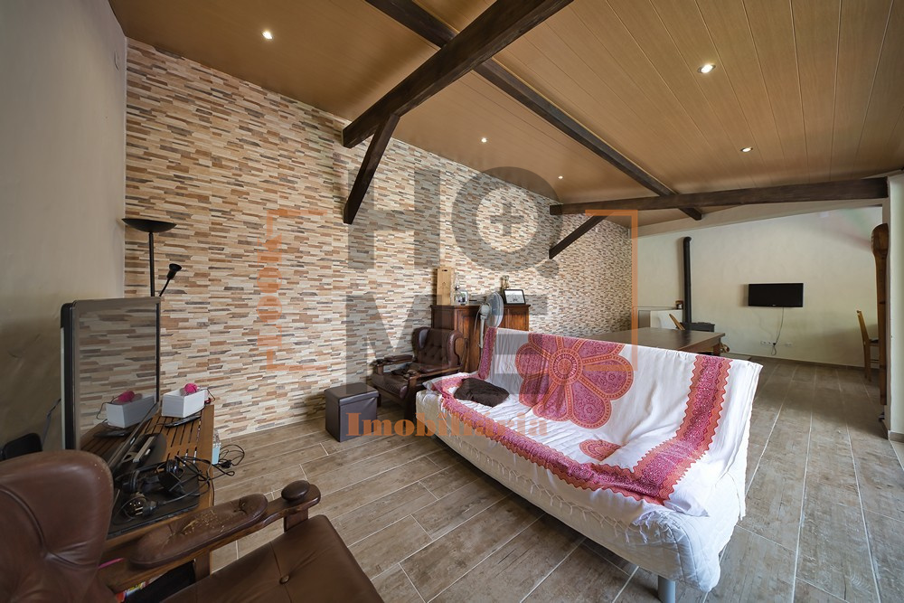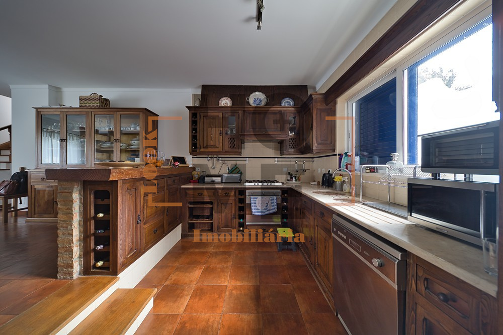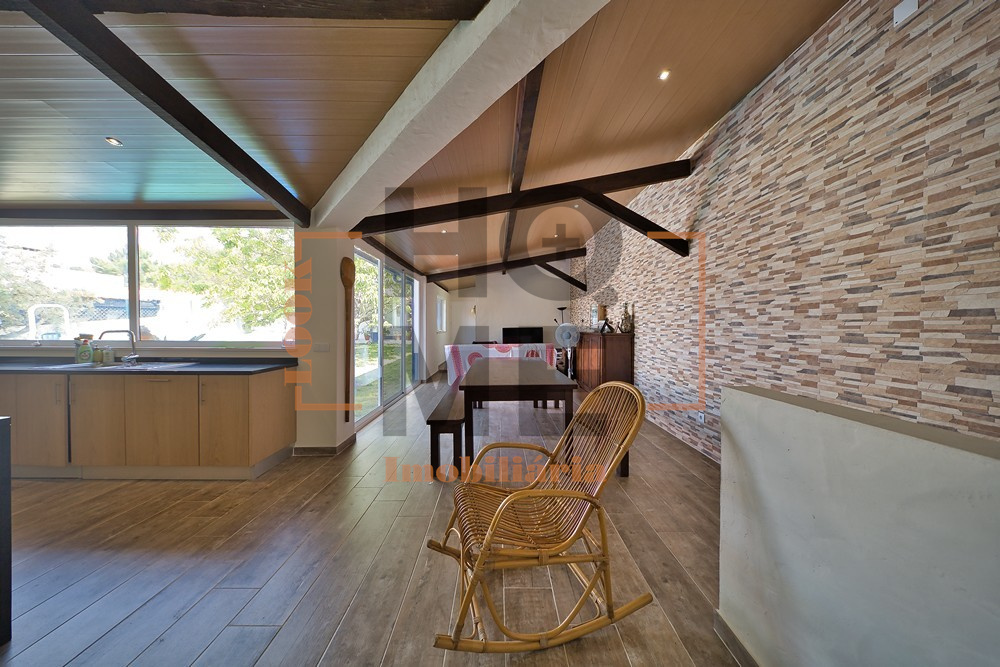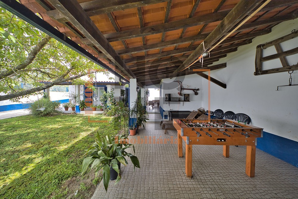 Outside, with access to the kitchen, we have a harmonious shed with barbecue, wood oven and dishwasher, where we also have access to a large fully glazed lounge, overlooking the garden, equipped with wood burning stove, kitchen, bathroom with shower and access to a 3 car garage.
