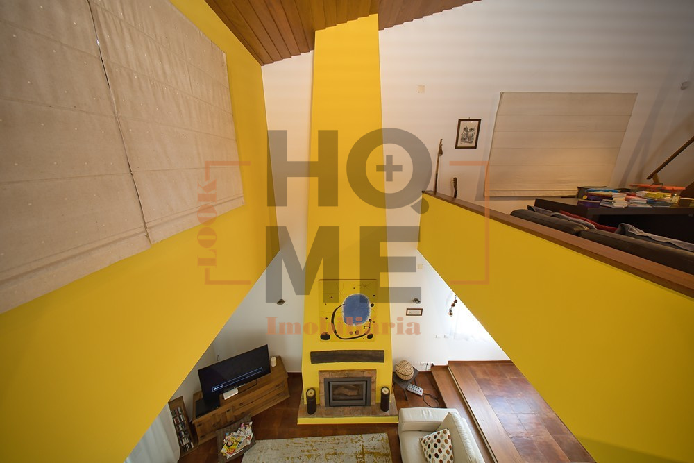 On the ground floor we have a large space consisting of a kitchen (semi equipped), dining room and living room equipped with AC and fireplace with stove; WC with shower and a bedroom with wardrobe.